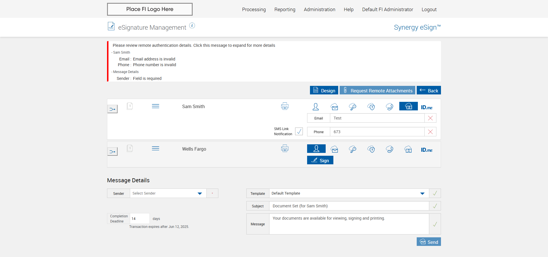 | {Group=, EditFullName=, Description=First, manualy login into immadmin and "Default SMS" checkbox checked. Then strat execute testcase for eSign app and verify Remote sign with Goverment ID., Archive=, Email=, Platform=, Message=Your documents are available for viewing, signing and printing., FileName=, New Column 02=, ShortName=, EditShortName=, PartyName=, Phone_Number=+91 9879497888, Filepath=src/main/resources/testdata/files/documentRTS/OptionalSignature.zip,src/main/resources/testdata/files/documentRTS/OptionalSignature.zip,src/main/resources/testdata/files/documentRTS/STUDENTS_LOAN.pdf,src/main/resources/testdata/files/documentRTS/LOAN_APPLICATION.pdf, DocumentPermission=, TestID=verifyGovernmentIDAuthenticationSigningMethod, FItype=Admin, Required=, IndexSource=, PartiesToView=, TextField=, Document Names=, Password=P@ssword1!, DocumentName=LOAN_APPLICATION, Path=, Dropdownvalues=, UserName=fiadmin, Email_Id=Kaushal.Patel@kinective.io, Index_Field_Name=, Sender_Email_Id=employee1@immonline.com, FI_ID=kp1, Vendor=, AttachmentTypeOption=, TemplatePermission=, ImagingSystem=, Date=, Subject=SMS-Phone, NumOfAttachments=, Folderpath=, Type=, NameDescription=, AttachmentPath=, Export_Values=, FullName=STUDENTS_LOAN, EditNameDescription=} |
