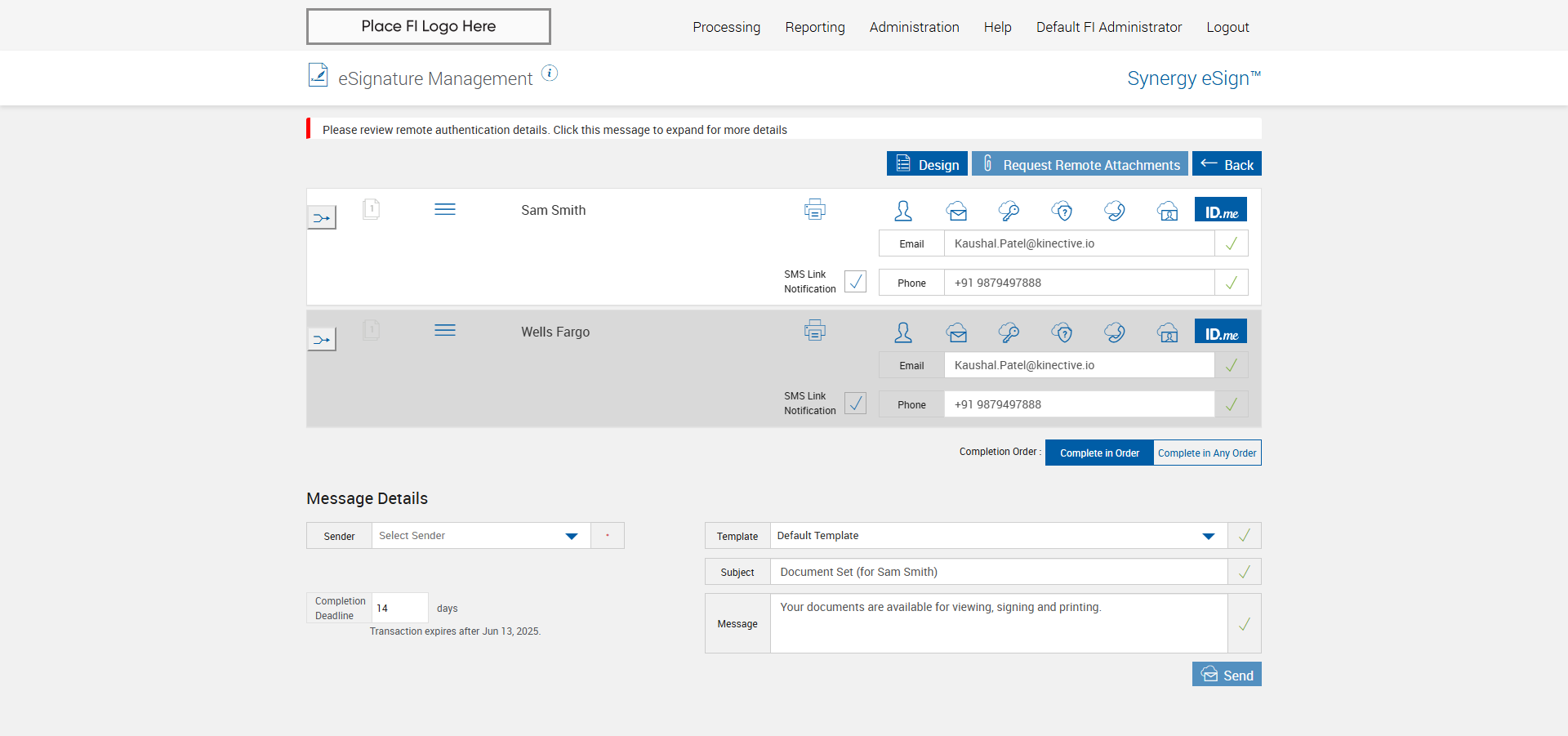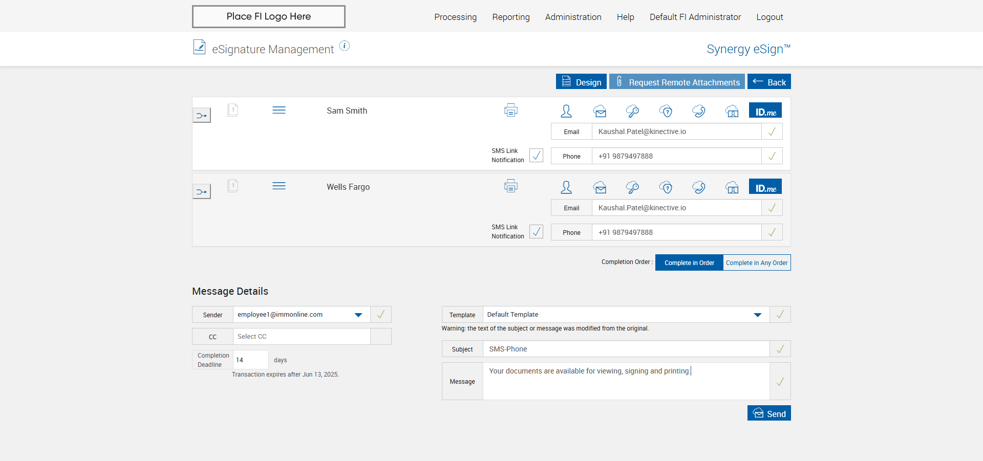 | {Group=, EditFullName=, Description=First, manualy login into immadmin and "Default SMS" checkbox checked. Then strat execute testcase for eSign app and verify Remote sign with ID.me, Archive=, Email=, Platform=, Message=Your documents are available for viewing, signing and printing., FileName=, New Column 02=, ShortName=, EditShortName=, PartyName=, Phone_Number=+91 9879497888, Filepath=src/main/resources/testdata/files/documentRTS/OptionalSignature.zip,src/main/resources/testdata/files/documentRTS/OptionalSignature.zip,src/main/resources/testdata/files/documentRTS/STUDENTS_LOAN.pdf,src/main/resources/testdata/files/documentRTS/LOAN_APPLICATION.pdf, DocumentPermission=, TestID=verifyIDMeAuthenticationSigningMethod, FItype=Admin, Required=, IndexSource=, PartiesToView=, TextField=, Document Names=, Password=P@ssword1!, DocumentName=LOAN_APPLICATION, Path=, Dropdownvalues=, UserName=fiadmin, Email_Id=Kaushal.Patel@kinective.io, Index_Field_Name=, Sender_Email_Id=employee1@immonline.com, FI_ID=kp1, Vendor=, AttachmentTypeOption=, TemplatePermission=, ImagingSystem=, Date=, Subject=SMS-Phone, NumOfAttachments=, Folderpath=, Type=, NameDescription=, AttachmentPath=, Export_Values=, FullName=STUDENTS_LOAN, EditNameDescription=} |