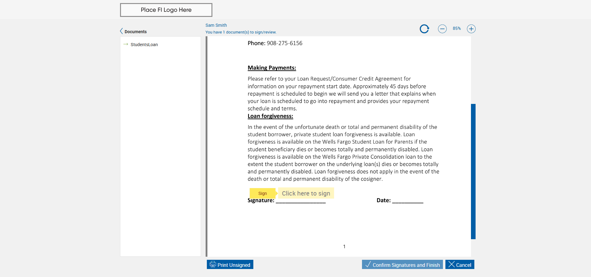 java.lang.Exception: Phone number for signer field not found in page!!